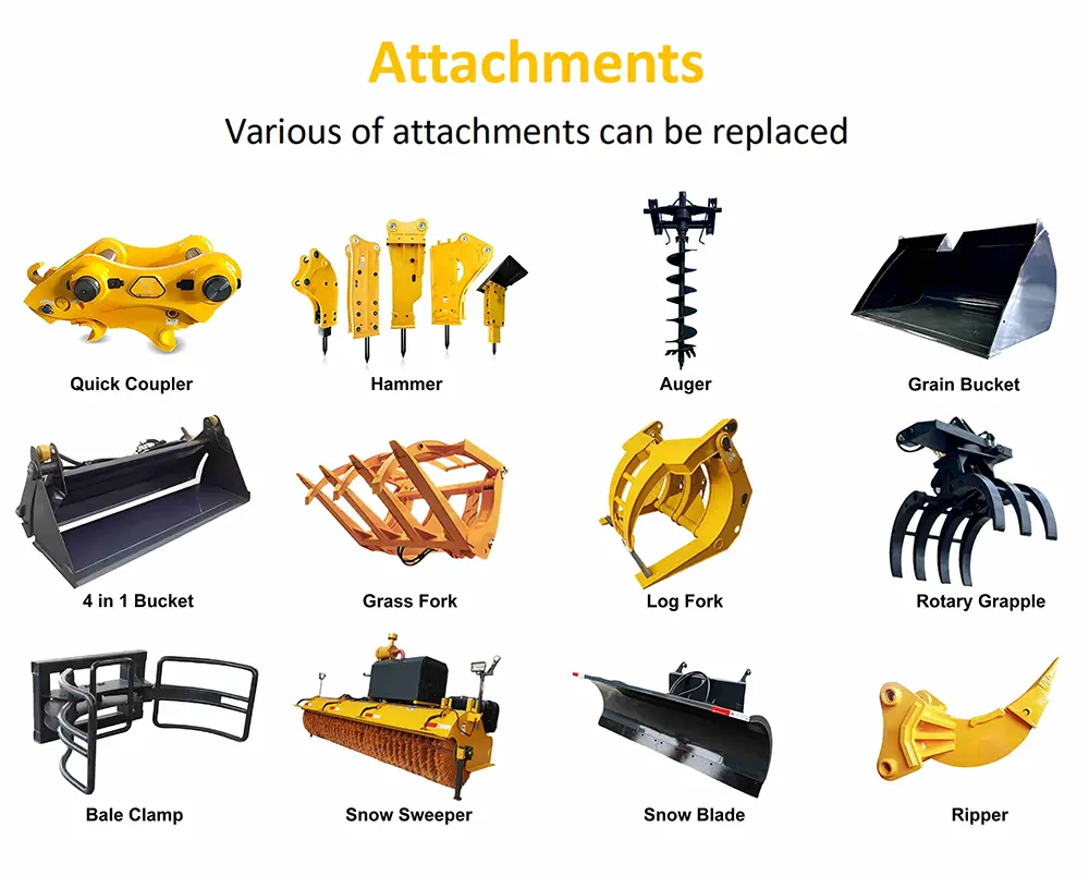 কৃষি এবং বনজ: ঐচ্ছিক আনুষাঙ্গিক যেমন কাঠের গ্রাব এবং ঘাসের কাঁটা ব্যবহার করা যেতে পারে বহুমুখী ক্রিয়াকলাপ অর্জন করতে।